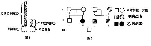 (1)图1是人类性染色体的差别部分和同源部分的模式图.外耳道多毛症仅由父亲传给儿子,不传给女儿,该致病基因位于图中的__________________部分;人类红绿色盲基因存在于图中的__________________部分.
