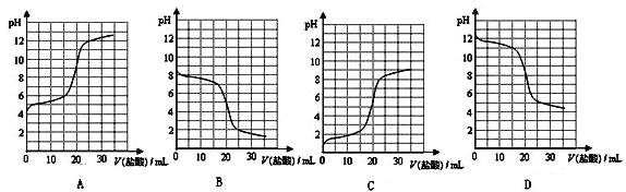 9.室温下,向20.00mL稀氨水中逐滴加入等物质的量浓度的盐酸,下列示意图变化趋势正确的是 ( )