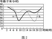 读某特大城市某干道市区---郊区双向车速变化曲线图(图二),完成23--24题。
