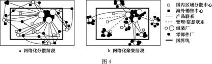 读汽车工业空间组织演化过程的两个阶段图(图4),回答27-28题。