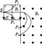 17.如图所示,场强E的方向竖直向下,磁感应强度B1的方向垂直纸面向里,磁感应强度B2的方向垂直纸面向外。在S处有四个二价正离子甲、乙、丙、丁,都垂直于场强E和磁感应强度B1的方向射入,若四个离子的质量关系为m甲=m乙<m丙=m丁,速度关系为v甲<v乙=v丙<v丁,则运动到P1、P2、P3、P4的四个位置的正离子分别为(不计离子重力) ( )