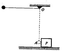 如图所示,质量为m的球系于长L=0.8m的轻绳末端,绳的另一端系于O点。将小球移到轻绳水平的位置后释放,小球摆到最低点A时,恰与原静止于水平面上的物体P相碰。碰后小球回摆,上升的最高点为B(图中未画出),A、B的高度差为h=0.20m。已知物体P的质量为M=3m,物体P与水平面间动摩擦因数