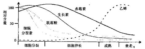 I自然生长的植物在果实成熟过程中,各种激素都有明显变化。某实验小组测定了苹果等果实成熟过程中激素的动态变化,如图所示:
