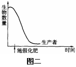 ④某农民因不慎使用了假化肥导致农作物迅速死亡。研究小 组的同学对农田中的植物数量进行了统计并画出了如图二所示的曲线。请在图二中画出该农田中初级消费者和次级消费者在数量上的变化趋势,并注明各曲线的名称。