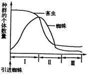 B、在Ⅰ期间,若针对害虫施以杀虫剂,蜘蛛的数量将会增加得更快