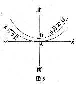 D.生产重点转向对废弃物的综合利用 图5为某地6月9日和6月22 日两天太阳视运动的投影方位示意图,回答10-11题。