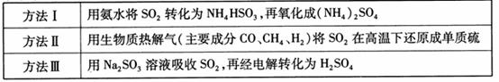 下表列出了3种燃煤烟气脱硫方法的原理。