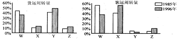 14.按W、X、Y、Z顺序分别对应的交通运输方式是 ( )