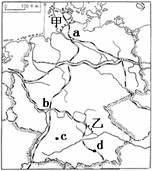 20.图中所标代号a、b、c、d分别表示该国最大港口和航空中心的是 ( )