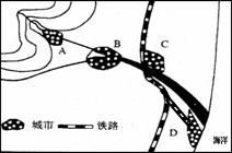 24.图中ABCD四座城市交通条件较好的是 ( )