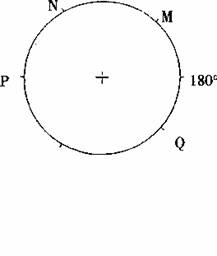 下图是以极点为中心的50°纬线圈,图中数字表示经度度数,P、Q之间和M、N之间为陆地。据图回答1~2题。