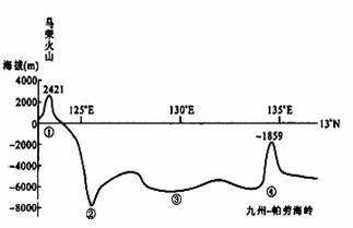 8.马荣火山与九州-帕劳海岭的距离约( )