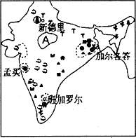读“印度工农业和城市分布图”,回答12~14题。