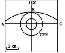 下图表示全球处在同一日期时,曲线ABC上的太阳高度为00,读图完成17~20题。