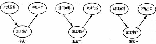 (3)20世纪80年代以来,发达国家将工厂转移到B地区,形成了三种生产模式(如下页图),试分析影响这三种生产模式的主导区位因素。(6分)