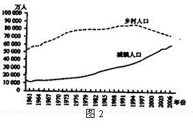 图2为某国城镇人口和乡村人口的变化,读图回答5-8题