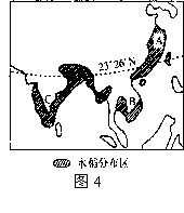 图4是“亚洲水稻分布图”,完成下列12-15题。