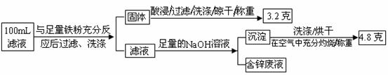 则100mL滤液中Cu2+ 的浓度为 ▲ mol·L-1 ,Fe2+的浓度为 ▲ mol·L-1