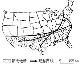 美国本土老年人口向南方“阳光地带”的迁移示意图(1955~1960年)