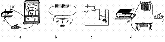 8.如图2所示的四个装置,以下关于它们分别用来演示哪个物理现象的描述,错误的是:D