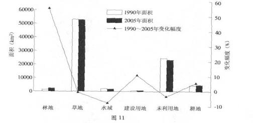 材料一:l990-2005年E市土地利用类型变化(图11)。