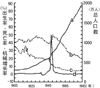 [解析]第1题中a、b、c、d依次是人口总数、人口出生率、人口死亡率、人口机械增长率,第2题中要特别注意时间为49年前后,正是国民党溃败到台湾之时。