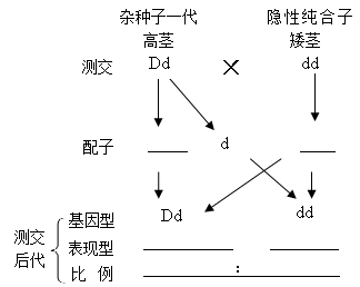 (3)通过测交实验,孟德尔成功地验证了假说的正确性。下面是测交实验的分析图解,请在空格上填上相关内容。