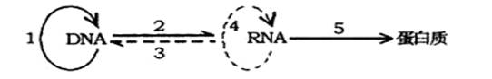 Ⅱ·下图是有关中心法则的模式图,它包括遗传物质的复制、转录、逆转录、翻译等过程,请据图回答下列问题。