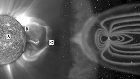 8.读太阳外部结构示意图可知,这次到达地球的带电粒子流来自图中的
