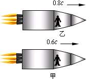 15(4分).甲、乙两人站在地面上时身高都是L0, 甲、乙分别乘坐速度为0.6c和0.8c(c为光速)的飞船同向运动,如图所示.此时乙观察到甲的身高L L0;若甲向乙挥手,动作时间为t0,乙观察到甲动作时间为t1,则t1 t0(均选填“>”、“ =” 或“<”).