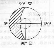 阴影部分表示夜半球,据此回答