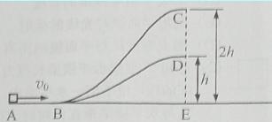 10.(上海物理)如图,ABC和ABD为两个光滑固定轨道,A、B、E在同一水平面,C、D、E在同一竖直线上,D点距水平面的高度h,C点高度为2h,一滑块从A点以初速度