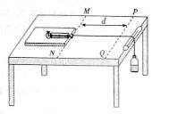 别与弹簧秤的挂钩和矿泉水瓶连接。在桌面上K^S*5U.C#O%下画出两条平行线MN、PQ,并测出间距