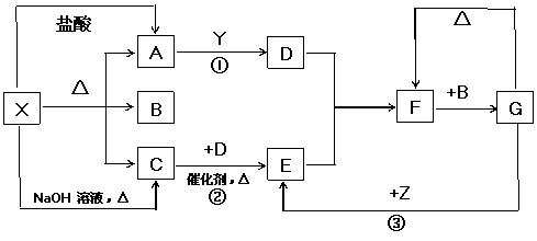 (1)物质X的化学式可能是 ,Z的化学式是 ,F的化学式是 。