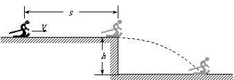 24在冬天,高为h=1.25m的平台上,覆盖一层薄冰,一乘雪橇的滑雪爱好者,从距平台边缘s=24m处以一定的初速度向平台边缘滑去,如图所示,当他滑离平台即将着地时的瞬间,其速度方向与水平地面的夹角为 θ=45°,取重力加速度g=10m/s2。求: