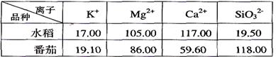 C.与番茄相比,水稻对Si032-吸收量大,对Ca2+吸收量小