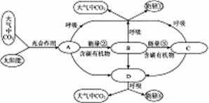 B.碳以CO2形式进入生物群落又以CO2的形式离开生物群落返回无机环境