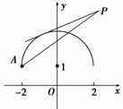解析:A∩B有4个子集,即A∩B有2个元素,∴半圆x2+(y-1)2=4(y≥1)与过P(2,4)点,斜率为k的直线有两个交点,如图:A(-2,1),kPA=,过P与半圆相切时,k=,∴<k≤.