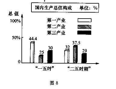 32.下面是从“一五”(1953-1957年)到“二五”(1958-1962年)时期我国国内生产总值的构成变化示意图。对这种变化表述不正确的是 ( )