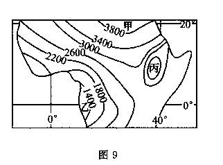36.图9为某区域年日照时数等值线图,读图并结合所学地理知识回答下列问题。(24分)