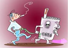 2010年5月31日,是第23个世界无烟日。明知吸烟可能致癌,但不少人依然在烟雾中为“习惯”所累。右图漫画启示我们