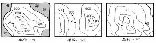 3、根据图中资料分析A、B两点气温差异及原因(3分)。