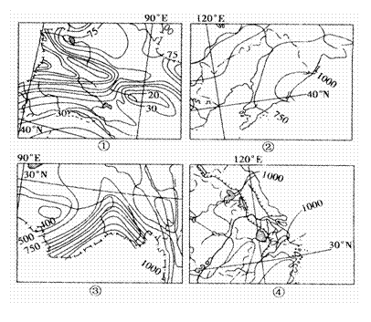 读图“两组同纬度地区等降水量线图”,回答下面3题。