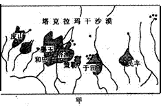 绿洲是荒漠中的明珠,读下面甲乙两图,回答3题。