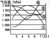 下图为某月3-7日四种天气系统经过不同地区时气压变化过程曲线图。读后回答以下三题