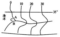 右图为某小岛周围海区的等盐度线分布图,
