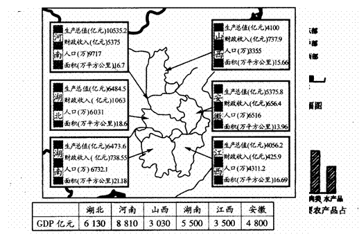 3. 针对我国中部地区现状,国家在“十一五”规划纲要(2006-2010)中提出“促进中部地区崛起”的区域发展战略。山西、河南、湖南、湖北、江西、安徽是我国中部崛起战略中的重要省区。根据下述资料,结合所学知识,回答(1)――(5)题。(11分)