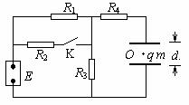 解:由电路图可以看出,因R4支路上无电流,电容器两极板间电压,无论K是否闭合始终等于电阻R3上的电压U3,当K闭合时,设此两极板间电压为U,电源的电动势为E,由分压关系可得U=U3=