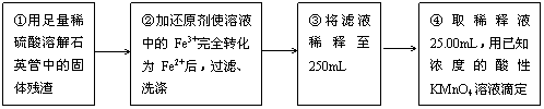 (5)FeCl3的质量分数通常可用碘量法测定:称取m g无水氯化铁样品,溶于稀盐酸,再转移到100mL容量瓶,用蒸馏水定容;取出10.00 mL,加入稍过量的KI溶液,充分反应后,用淀粉作指示剂并用c mol/L Na2S2O3溶液滴定(I2+2S2O32- = 2I- + S4O62-),共用去V mL.则样品中氯化铁的质量分数为____________。