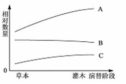 (3)如果右图中曲线B、C表示该群落中植物物种数或个体数的变化,则曲线B表示 ,曲线A表示该群落所含 的变化。